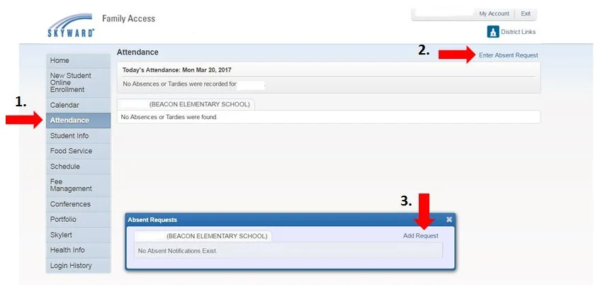 To report an absence, click on the link below to log into Skyward Family Access and follow these steps:
